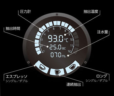 グループごとに、スタンバイ時は抽出温度を、抽出が始まると抽出時間をリアルタイムに表示します。